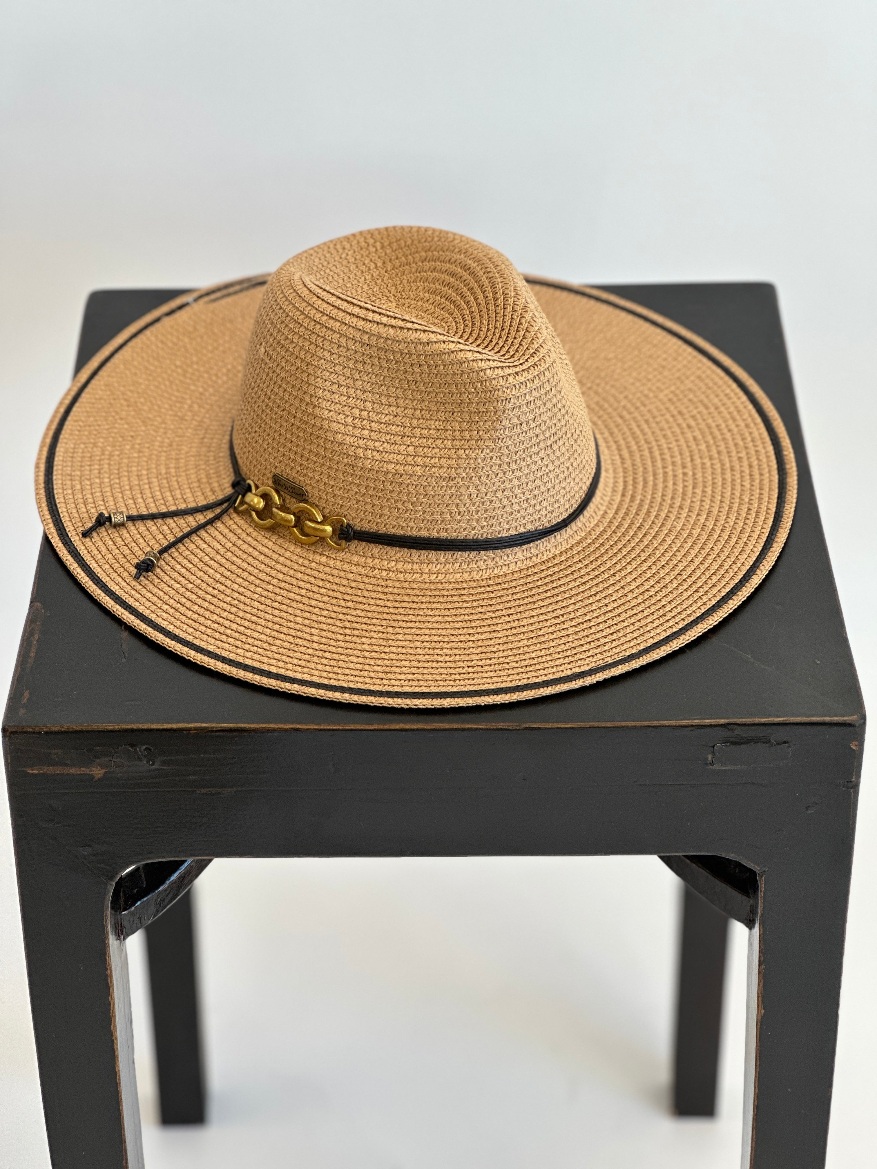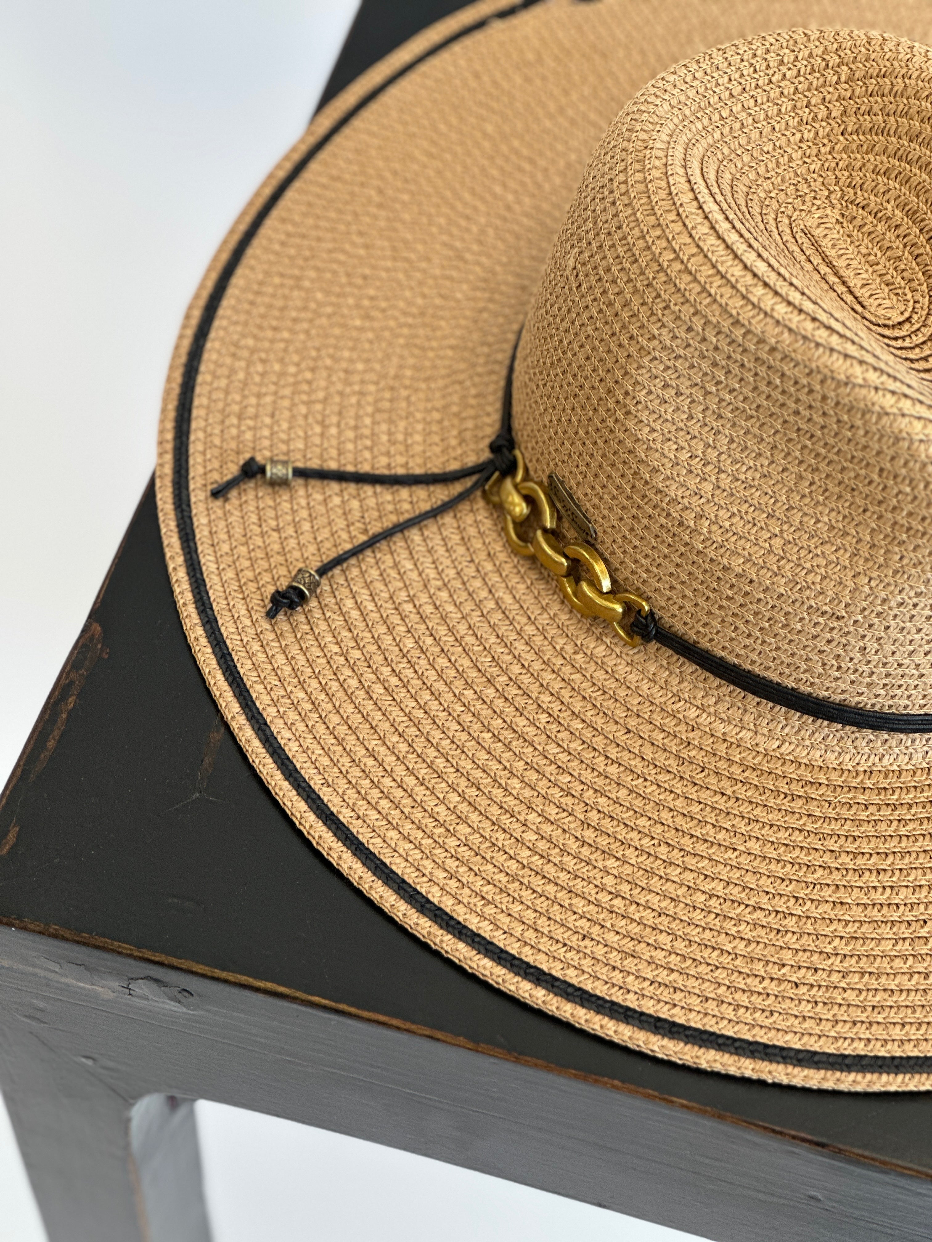 The hat of summer! Introducing the NEW Montecito Straw Panama in Natural! This vacation-ready straw panama features a fabulous gold chain bit and black two tone thread detail perfect for adding a touch of fun to any outfit. The best part? It's adjustable!