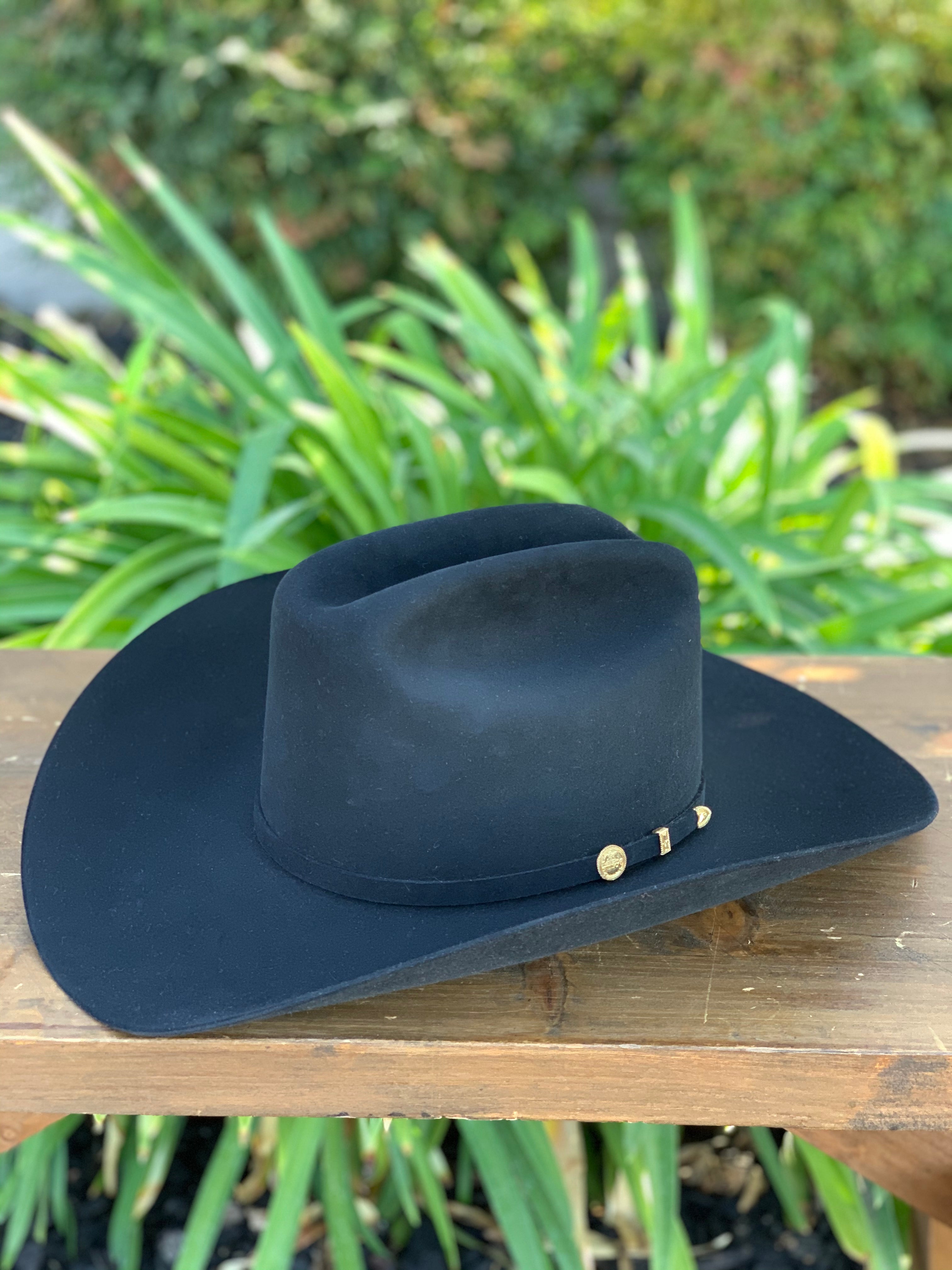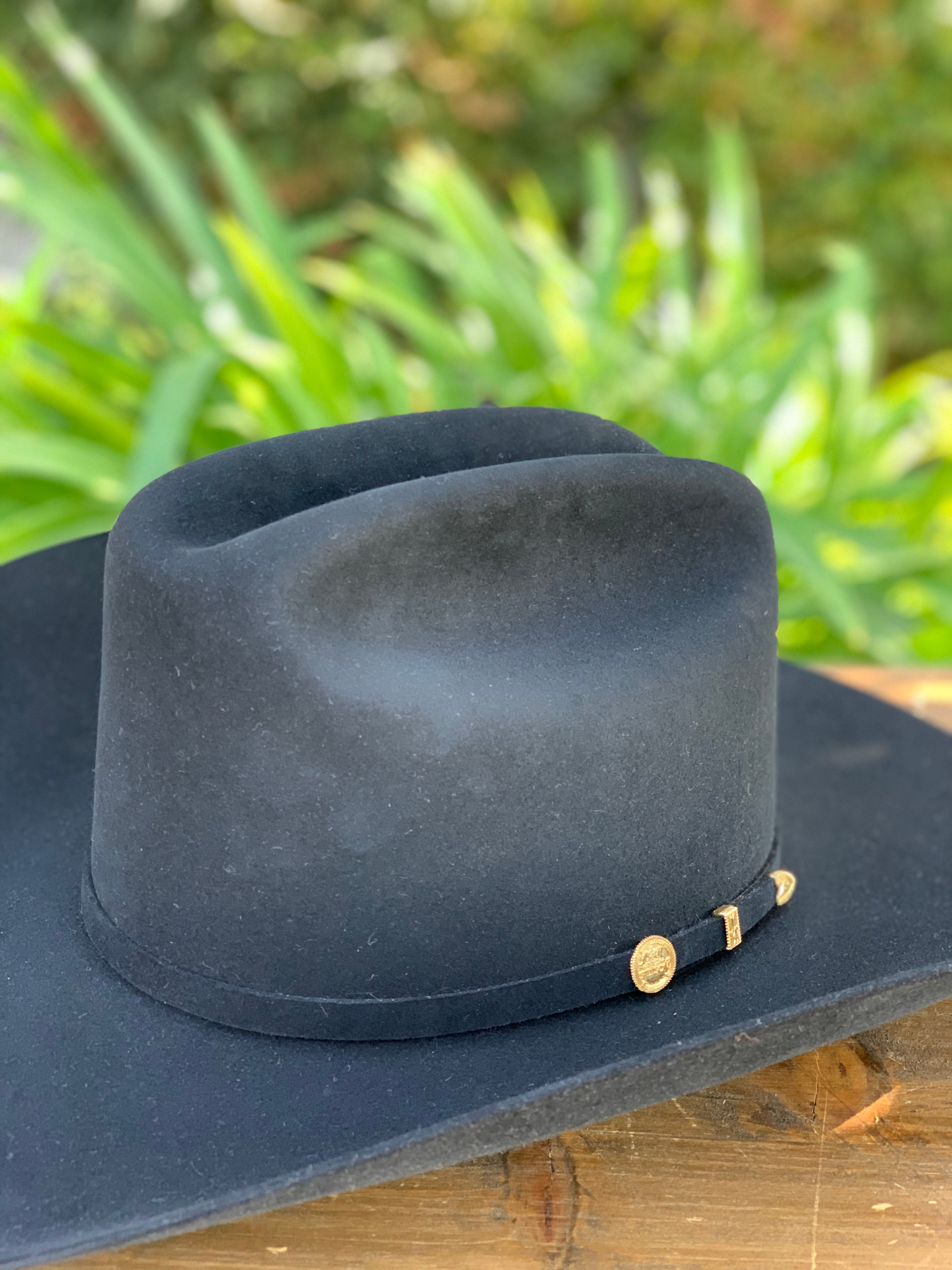 The El Presidente 100X Premier Cowboy Hat is constructed of 100X quality fur felt and features a cattleman crown, interior leather sweatband and 10K gold 3-piece El Presidente emblem buckle set. 100X Quality Fur Felt. Made in USA.