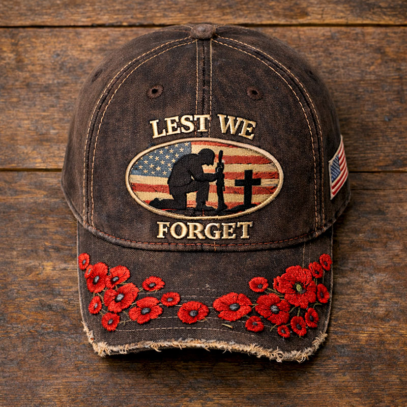 Vintage “Lest We Forget” Poppy Print Casual Hat